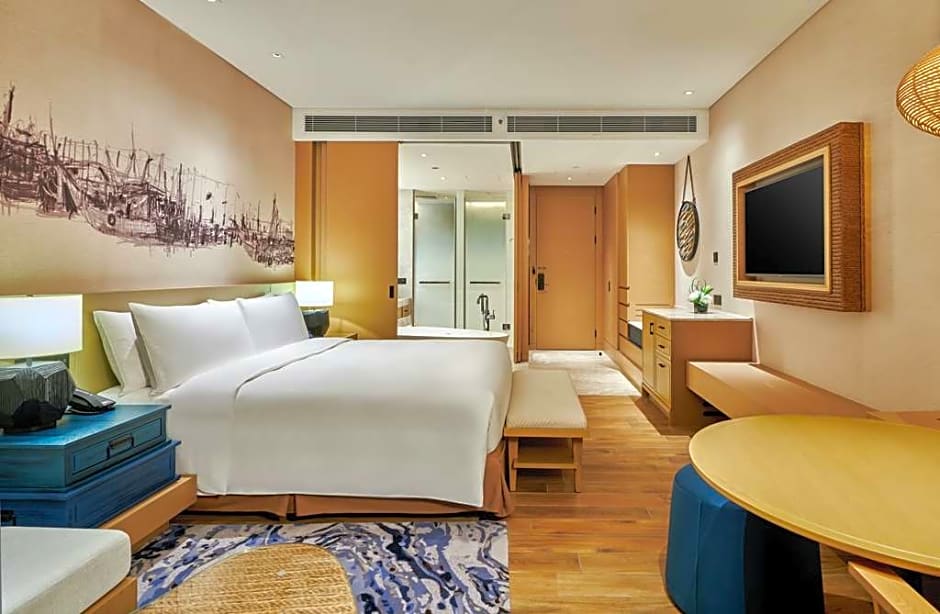 The spacious suite features air conditioning, a mini-bar, a tea and coffee maker, a seating area, as well as a flat-screen TV with cable channels. The unit has 1 bed.