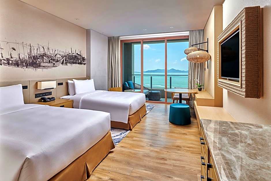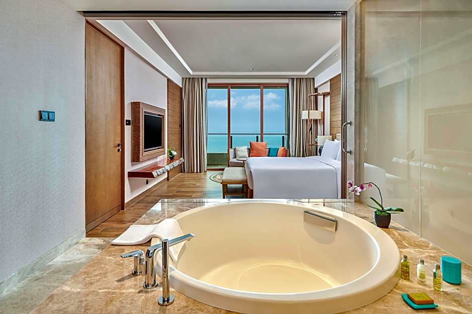 The spacious air-conditioned suite provides a flat-screen TV with cable channels, a mini-bar, a tea and coffee maker, a seating area as well as sea views. The unit offers 1 bed.